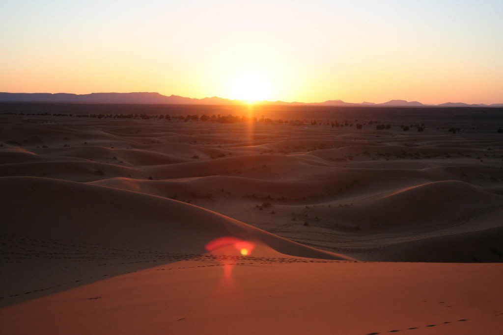 Día libre donde podremos aprovechar para disfrutar de las Dunas de Erg Chebbi. También llamadas Dunas de Merzouga. Se asemejan con un mar de arena, disponen de un área de 22 kilómetros de largo, de norte a sur, y 5 kilómetros de ancho. Las dunas de tonalidades anaranjadas llegan a tener más de 200m de altura. Son impresionantes durante el día y también por la noche, bajo las estrellas se configuran como una verdadera obra de arte en la propia naturaleza. Sin duda, un lugar místico.